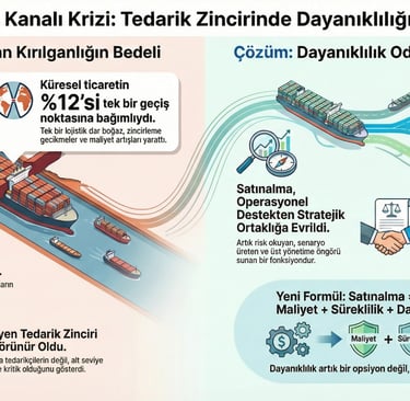 Bir kanalın kapanmasıyla küresel ticaretin durma noktasına gelmesi, satınalmanın organizasyon içindeki konumunu net biçimde tanımlamaktadır. Satınalma artık destekleyici bir fonksiyon değil, şirket stratejisinin ayrılmaz bir parçasıdır.