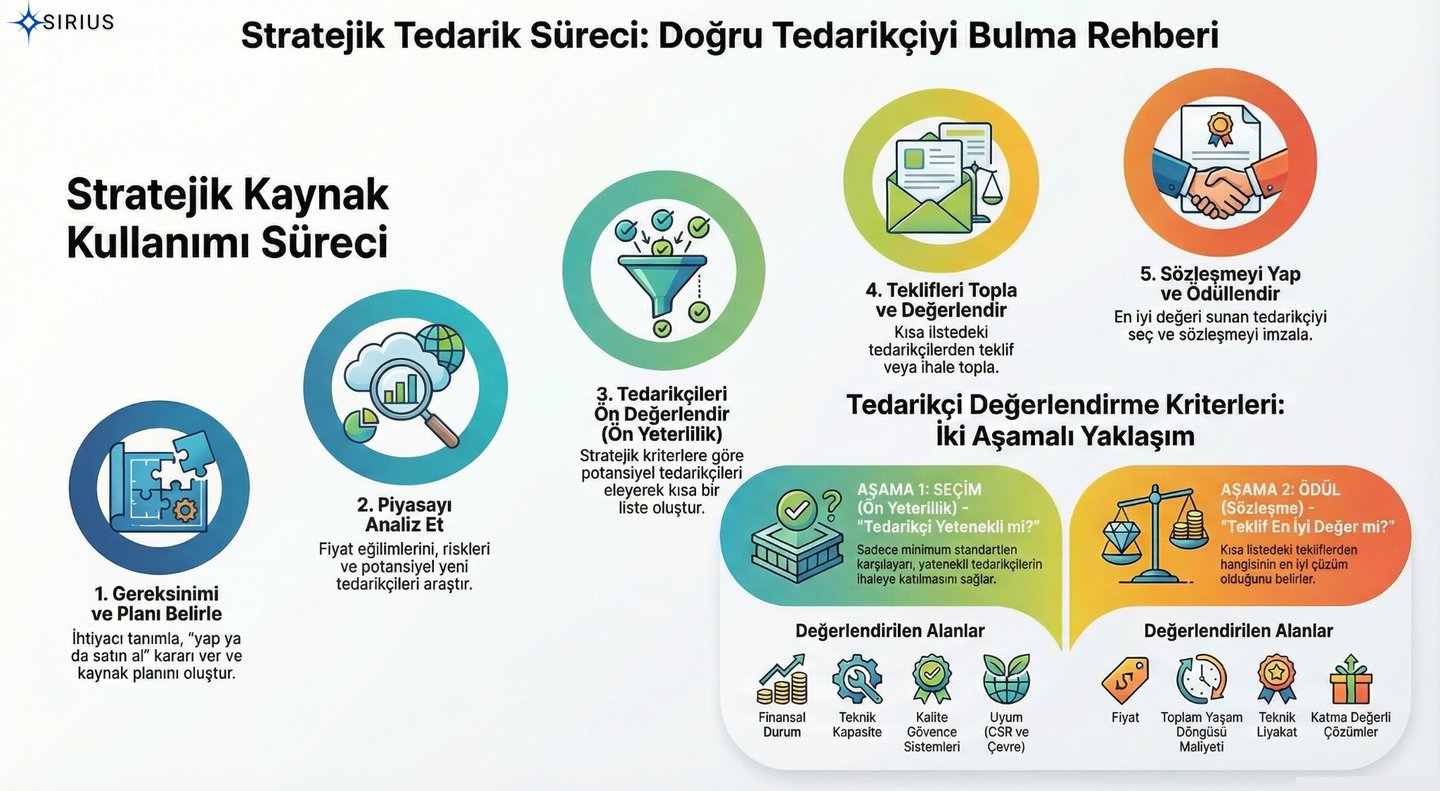 Finansal, operasyonel ve etik boyutları birlikte değerlendirerek dengeli ve sürdürülebilir tedarik kararları alır.